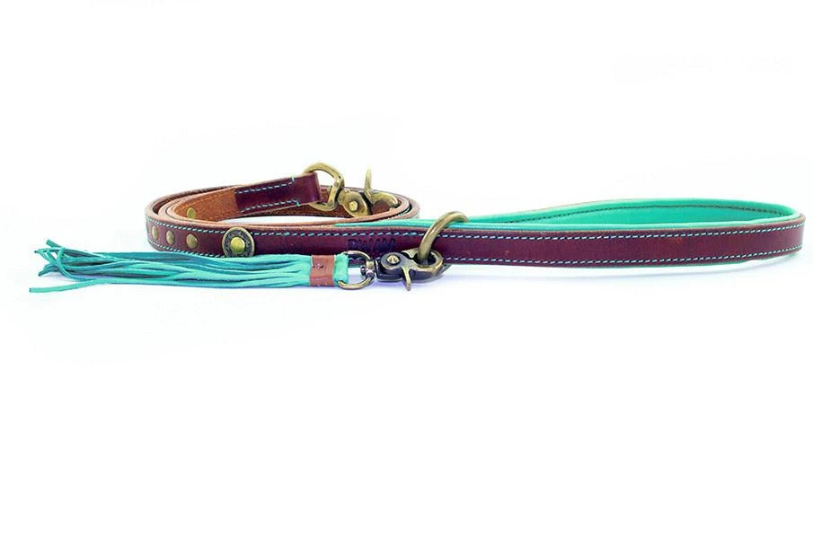 Mix en match deze stoere leren Dog with a Mission hondenlijn met een van de Dog with a Mission halsbanden! Deze riem past bij alle Dog with a Mission halsbanden door het kenmerkende turquoise randje wat in alle producten terugkomt.