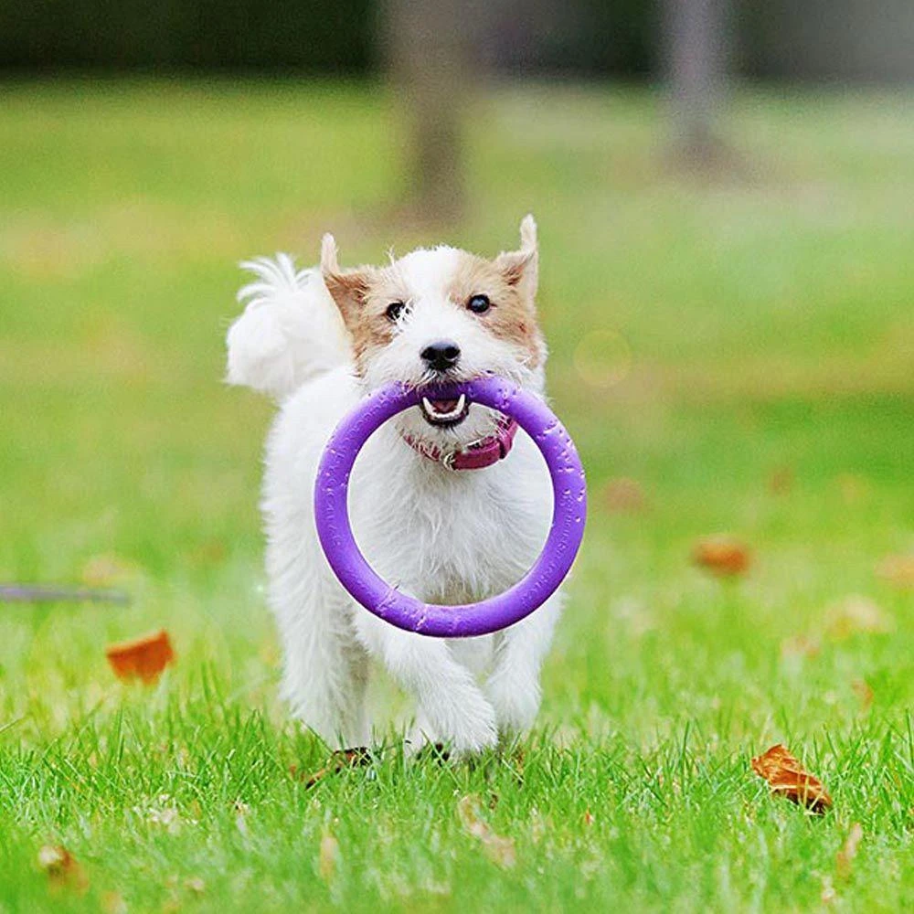 - Rennend: de hond vangt de Puller-ringen op en brengt ze één voor één terug. Als je hond de ring niet terug wil geven, laat hem dan de tweede zien. De oefening traint een hond om een voorwerp op te halen en helpt bij het ontwikkelen van snelheid en behendigheid.