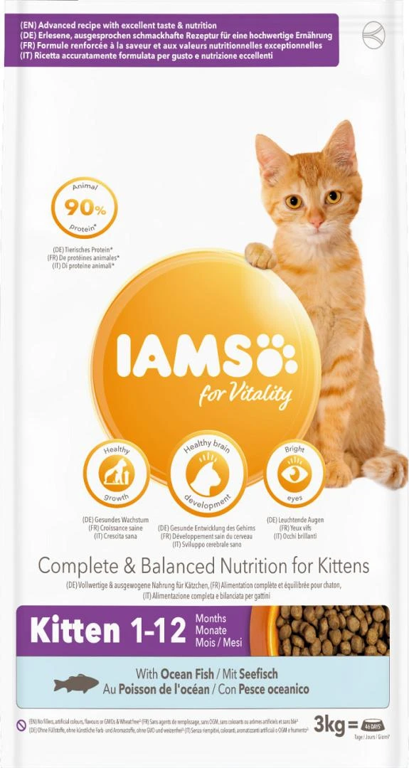 IAMS Kattenvoer Kitten Ocean Fish is een 100% complete en uitgebalanceerde specialistische voeding die uw huisdier op een smakelijke manier ondersteunt in zijn ontwikkeling.