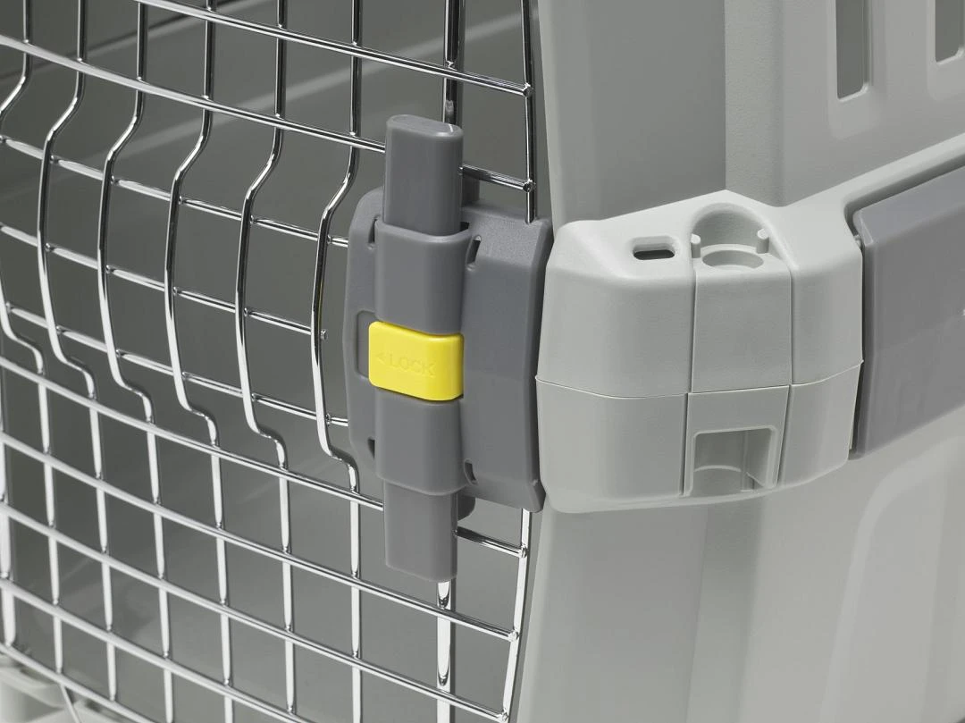 De grote, getraliede klep aan de bovenkant zorgt voor eenvoudige belading van de reismand. De stevige deur heeft een meerpuntssluiting welke een vergrendel functie heeft. Het geïntegreerde, opklapbare, zachte handvat bevorderd het draag comfort.