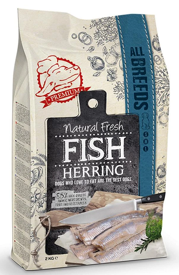 Natural Fresh FISH hondenvoer Adult herring is een premium droogvoer met verse haring, hoog in omega 3-vetzuren, voor volwassen honden van alle rassen.