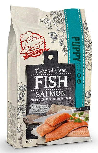 Natural Fresh FISH hondenvoer Puppy ML salmon is een zeer licht verteerbare, graanvrije premium puppybrok met verse zalm, voor pups van middelgrote tot grote rassen.