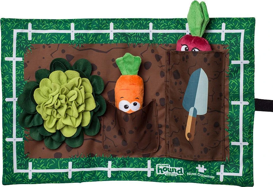 De Activity Matz Garden Game wordt geleverd met optionele sluitingen om de uitdaging naar een hoger niveau te tillen! Zodra je hond de lekkernijen of brokjes uit het pluchen materiaal heeft geroken, vergroot je de uitdaging door voedsel in de zakken te plaatsen en ze onder een extra laag te verbergen door het speelgoed in te vullen. Voor een nog moeilijkere uitdaging verberg je de smakelijke beloningen onder klittenbandsluitingen.