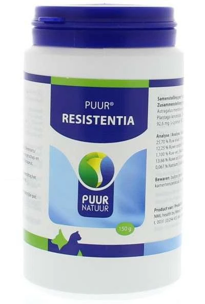 PUUR Weerstand/Resistentia Hond & Kat is een voedingssupplement voor honden en katten. Het kan gebruikt worden ter stimulering van het immuunsysteem, bij herstel na ziekte, ter verhoging van de vitaliteit en ter bescherming van gezonde cellen en weefsels.