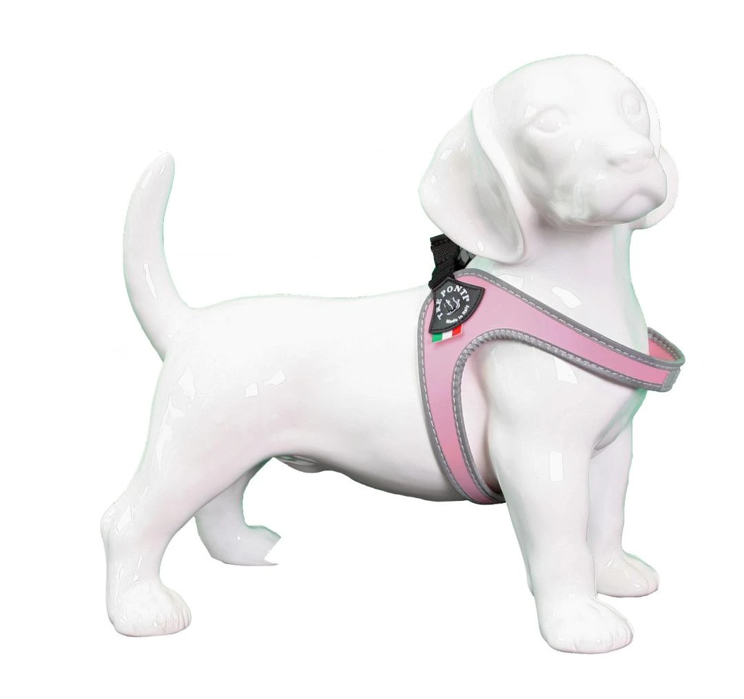 De Fibbia serie van Tre Ponti is ontwikkeld als ‘wandel’ tuigje en geschikt voor honden van 1 tot en met 14 kg. De bovenzijde van dit instaptuig is voorzien van een gesp. De Basic serie is uitgevoerd in vier kleuren; zwart, rood, blauw en roze. Hiernaast kunt u kiezen voor een standaard of een reflecterende uitvoering.