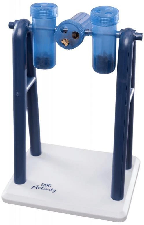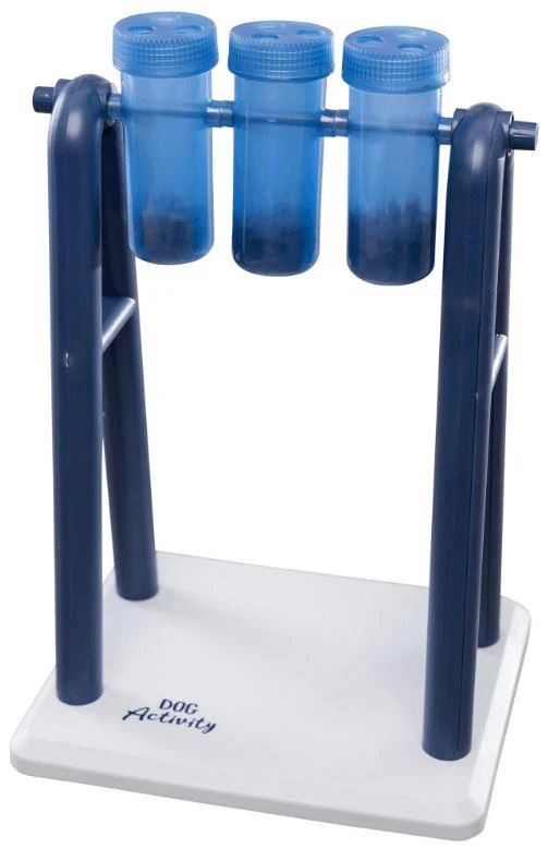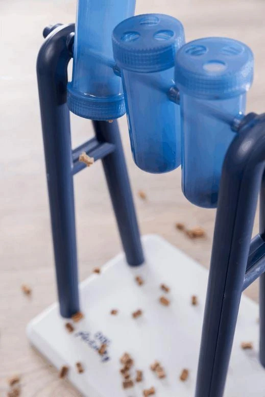 Door de gevulde potjes van de TRIXIE Dog Activity Turn Around om te draaien, vallen er beloningssnoepjes uit.