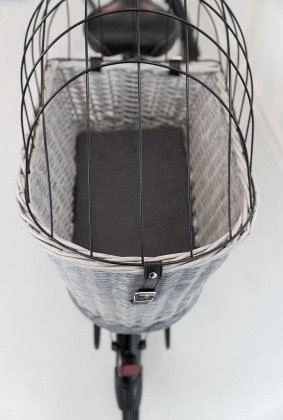 Met de TRIXIE fietsmand met rooster voor bagagedrager kunnen jij en je hond samen overal op pad. Deze mooie wilgentenen fietsmand heeft een draadkap, zodat jouw hond niet uit het mandje kan springen tijdens het fietsen.